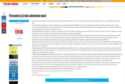 Publicação do artigo Passeatas já não adiantam mais no portal Folha Geral